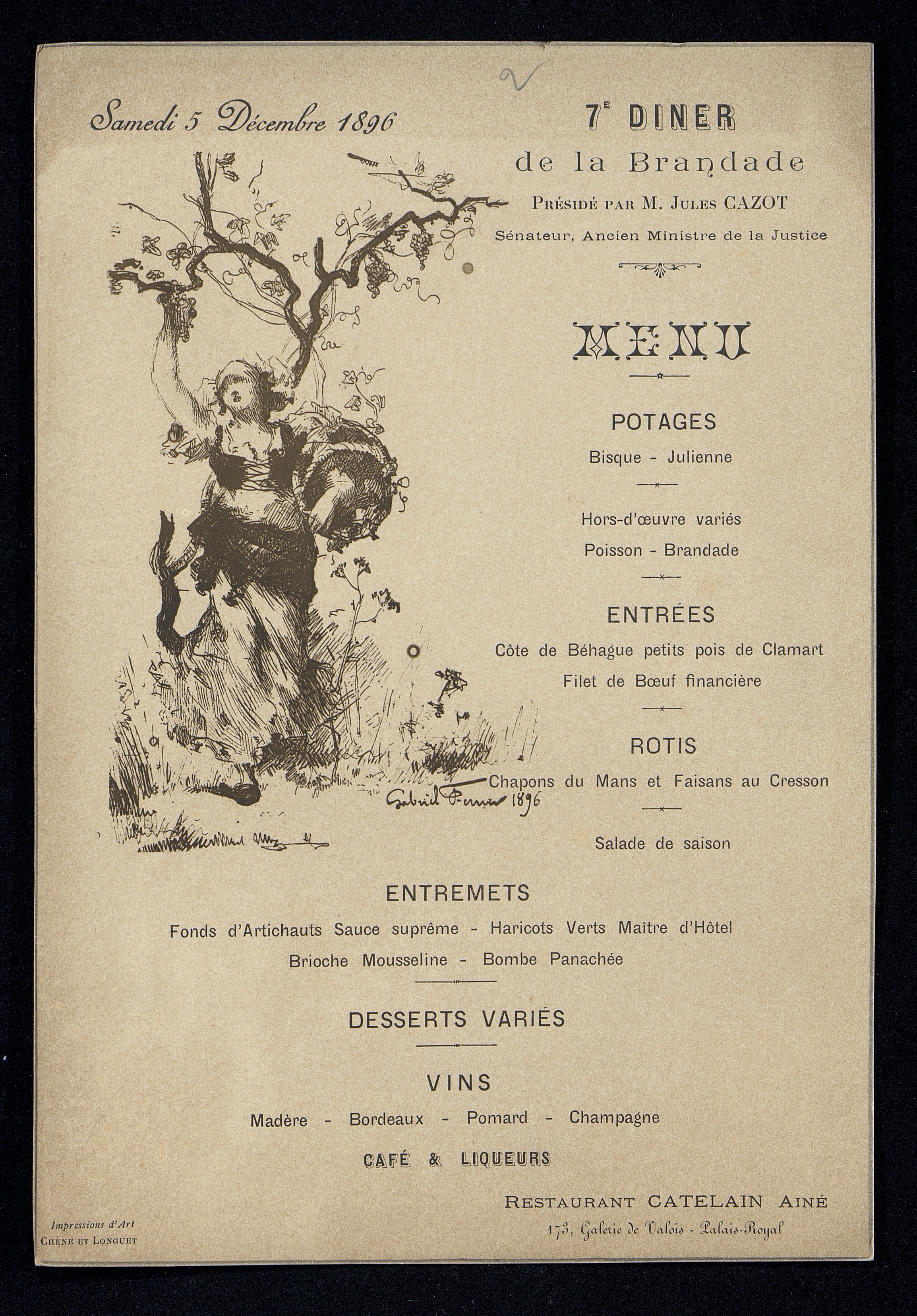 7e Dîner de la Brandade association de gardois à Paris. Allégorie des vendanges de Gabriel Ferrier 1896.