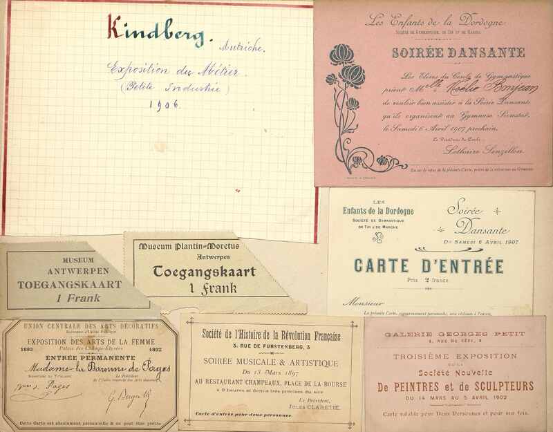 Entrée permanente à l'Exposition des Arts de la Femme par l'Union Centrale des Arts Décoratifs attribuée à la baronne de Pages. Mentions autographes manuscrites. 1892.