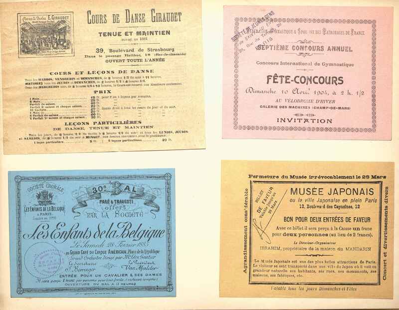 Publicité pour les Cours de danse Giraudet à Paris. Document illustré d'une vignette et des tarifs.