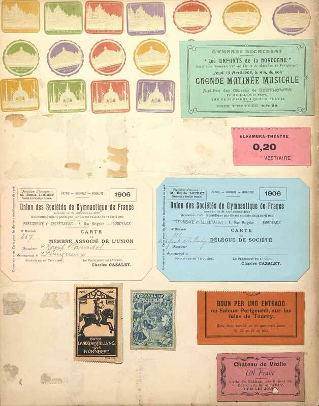 Carte de membre associé de l'Union des Sociétés de Gymnastique de France pour 1906, au nom de M. Paradol, de Périgueux.