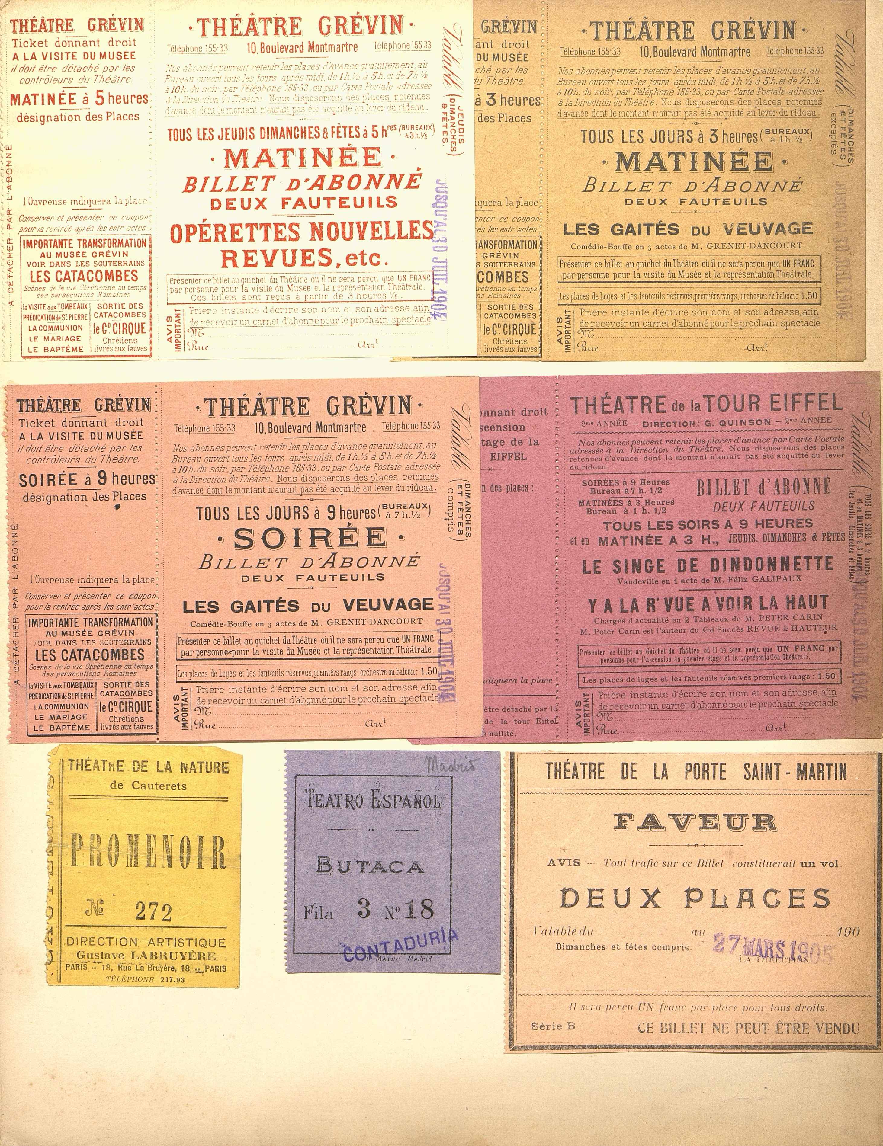 Plusieurs tickets du Théâtre du Musée Grévin et d'autres théâtres.