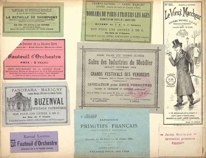 Ticket pour le diorama de Paris à travers les Âges, une reconstitution du vieux Paris. Champs-Elysées, Carré Marigny.