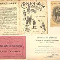 Petit dépliant publicitaire intitulé : Champignol malgré lui. Pièce en trois actes de Feydeau, représentée pour la première fois au théâtre des Nouveautés, le 5 novembre 1892, écrite en collaboration avec Maurice Desvallières.