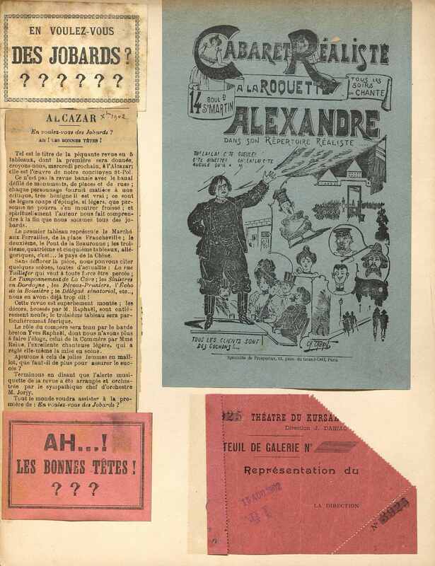 Tract publicitaire pour Alexandre dans son répertoire réaliste. Document illustré du Cabaret réaliste à la Roquette, 14 boulevard St-Martin. [s.d.]