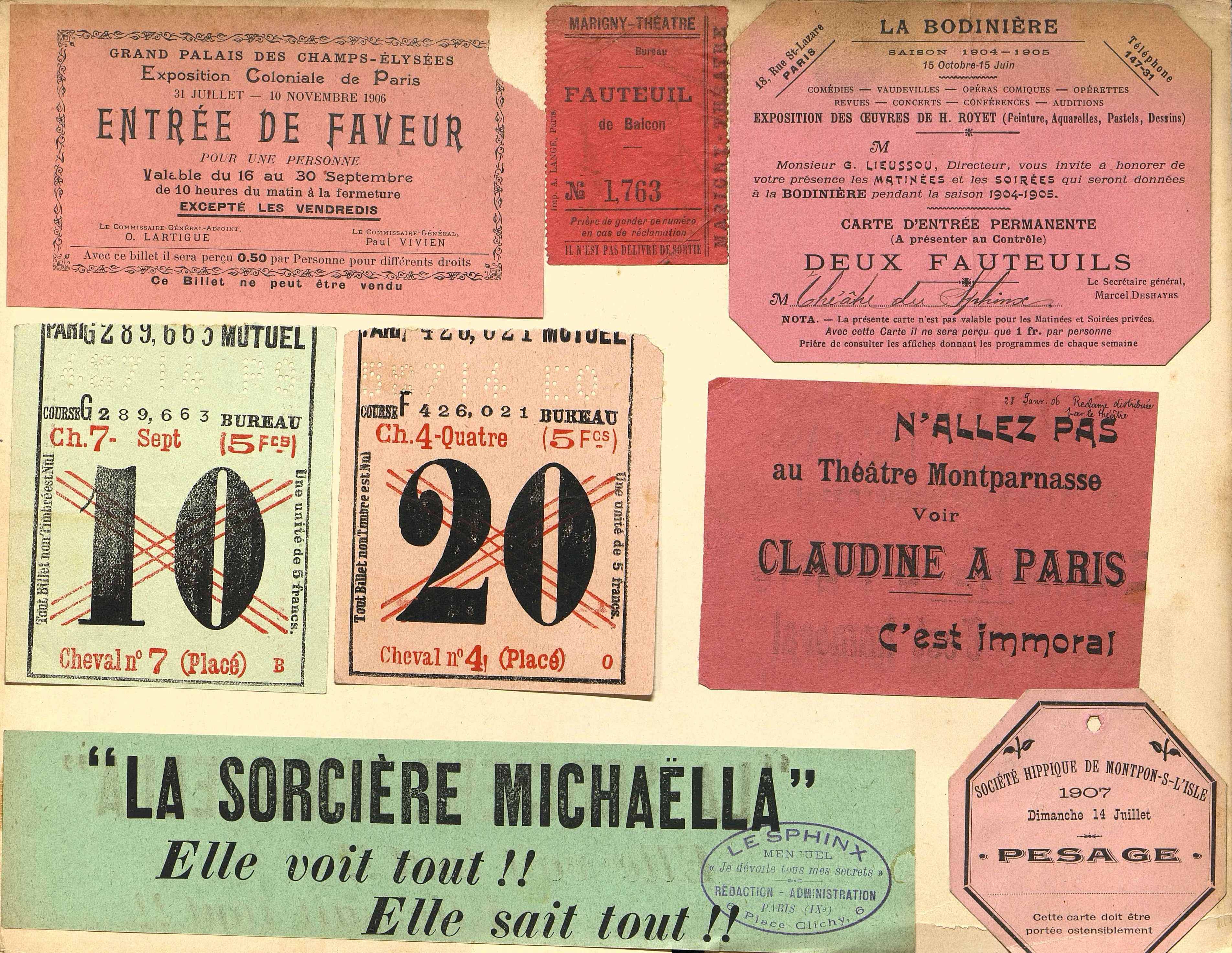 Planche de billets pour spectacles et expositions.