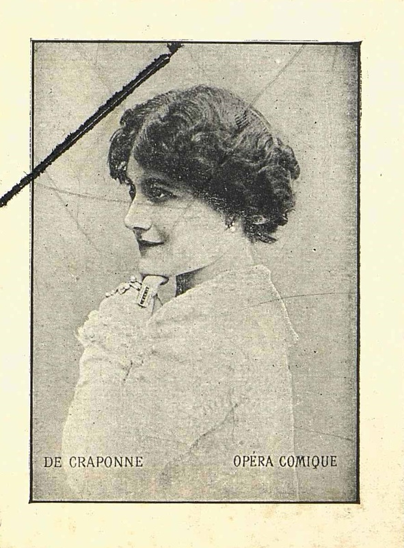 Photographie imprimée de la Soprano Craponne, de l'Opéra-comique.