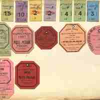9 tickets de pari, sans la précision de l'année ni du lieu.