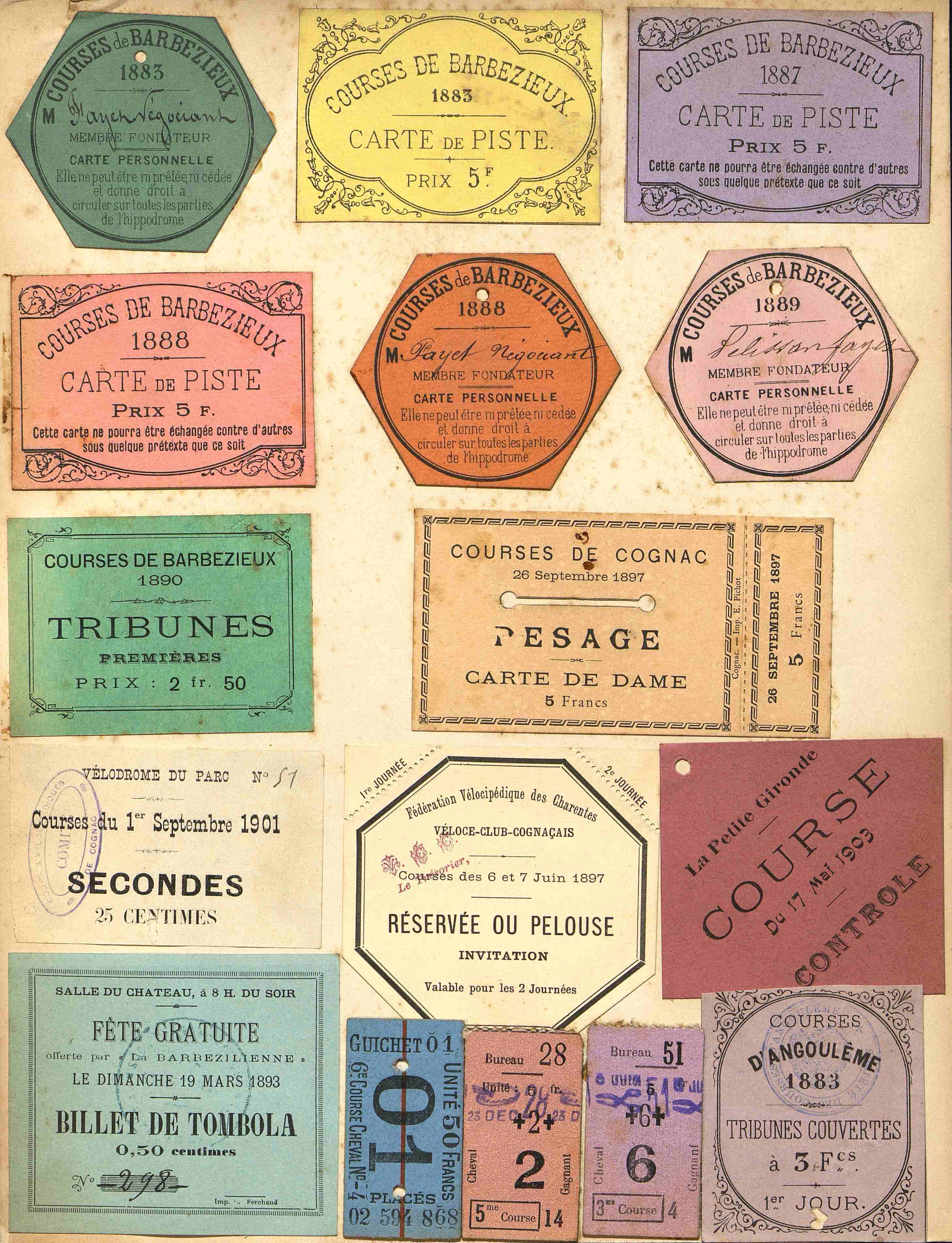 Tickets de paris hippiques, probablement à Angoulême.