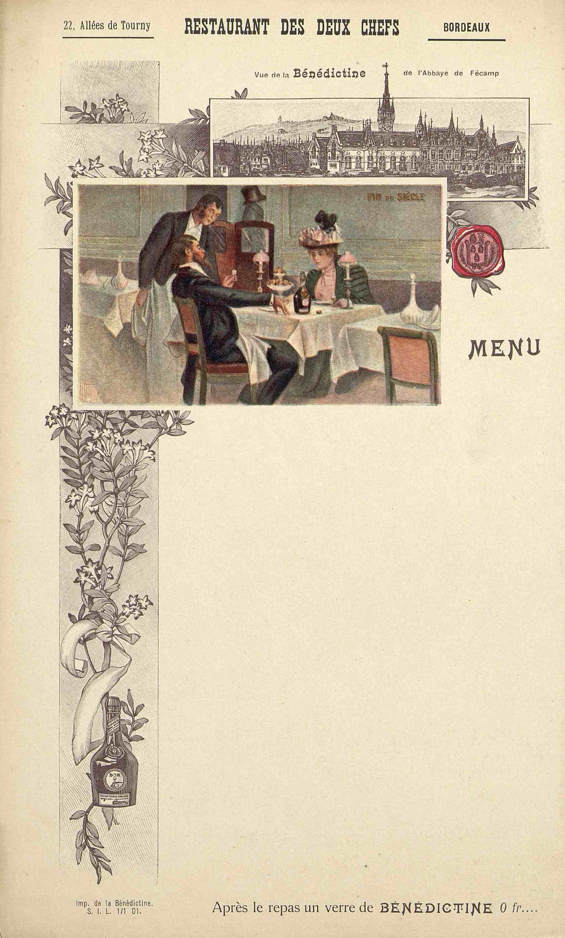 - Menu vierge et publicitaire du Restaurant des Deux Chefs à Bordeaux.