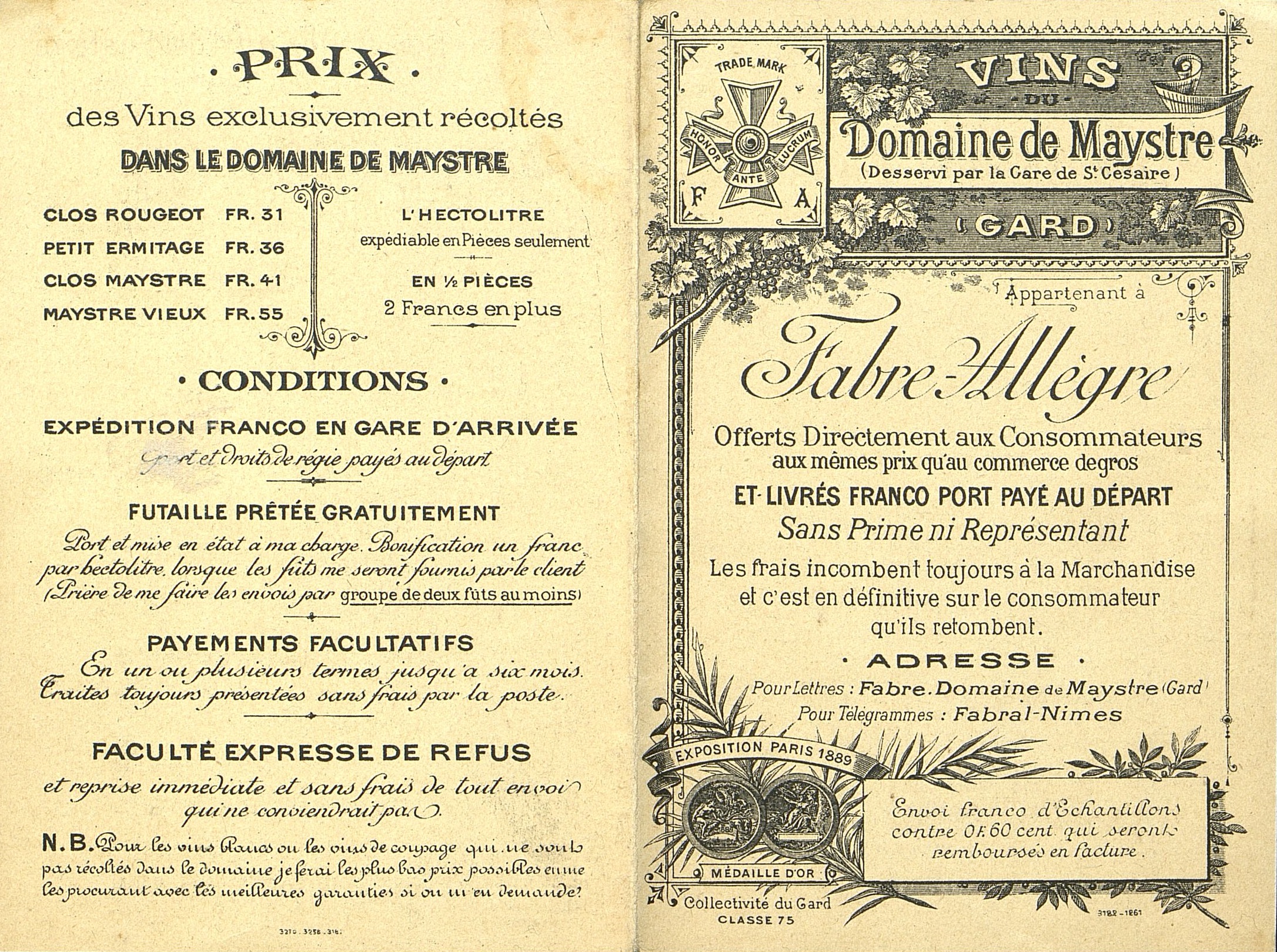 Vins du Domaine de Maystre
