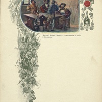- Menu publicitaire vierge à thème. Illustration d'une table de cabaret avec des soldats (XVIIe s. ?)