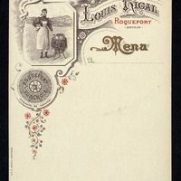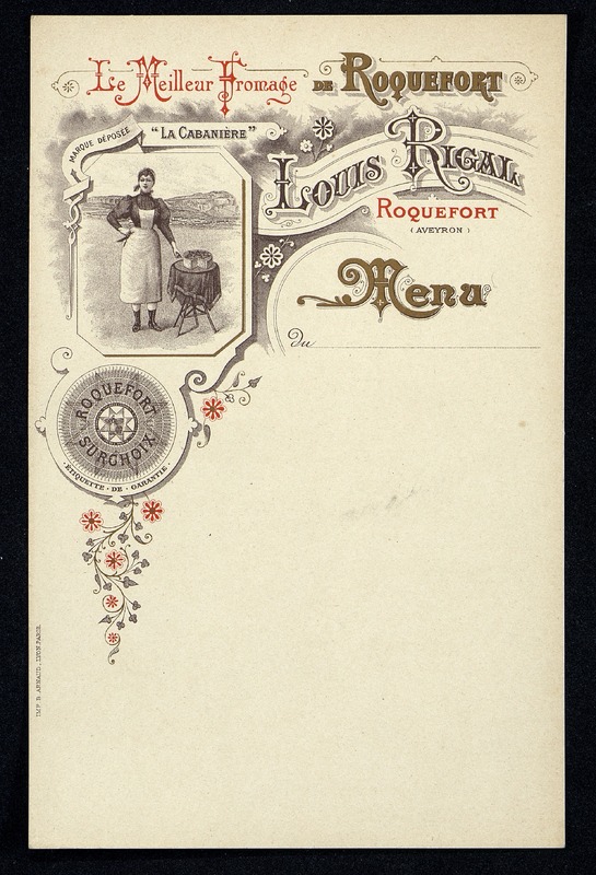 Menu publicitaire vierge de la Cabanière avec pour publicité le Roquefort Louis Rigal.