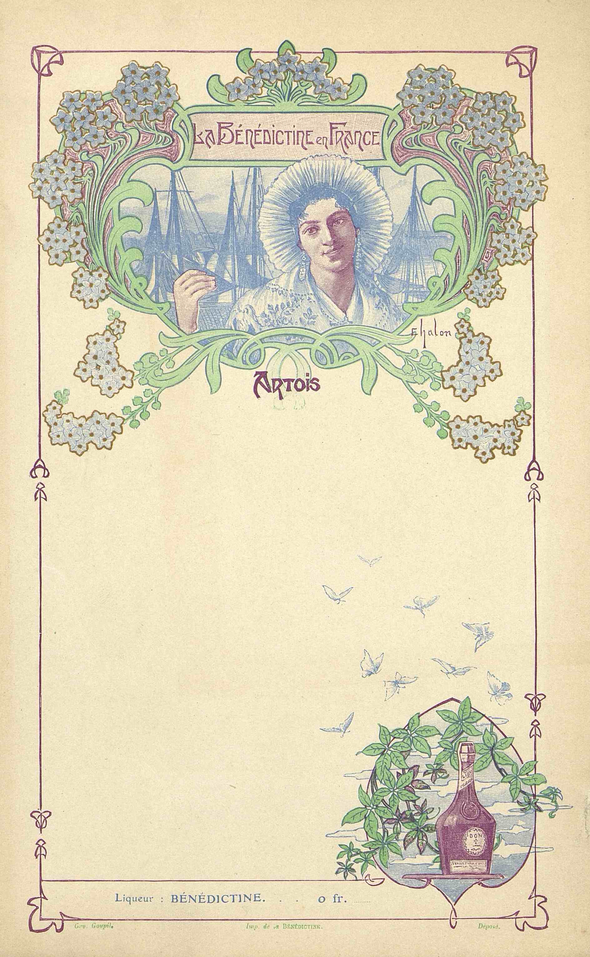- Menu vierge et publicitaire La Bénédictine. Série L'Artois.