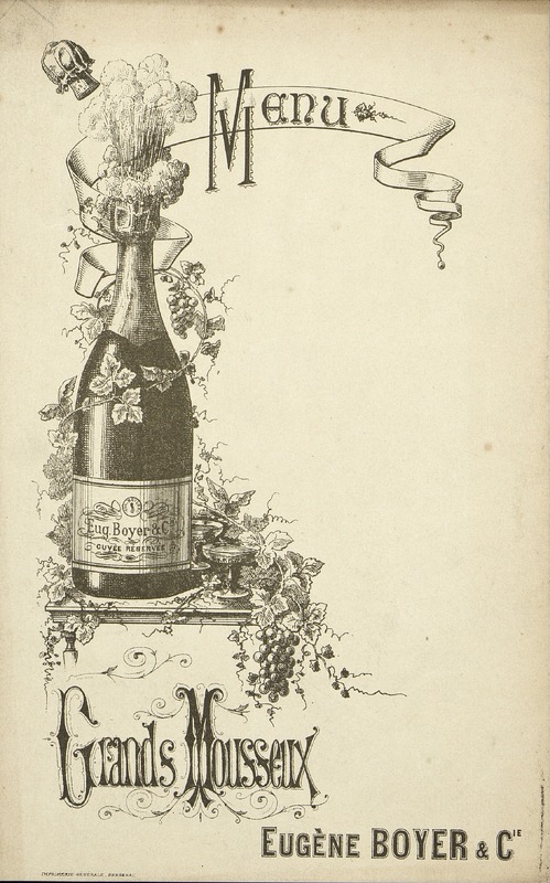 Menu vierge et publicitaire pour les Mousseux Eugène Boyer.