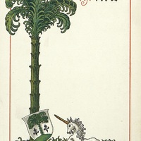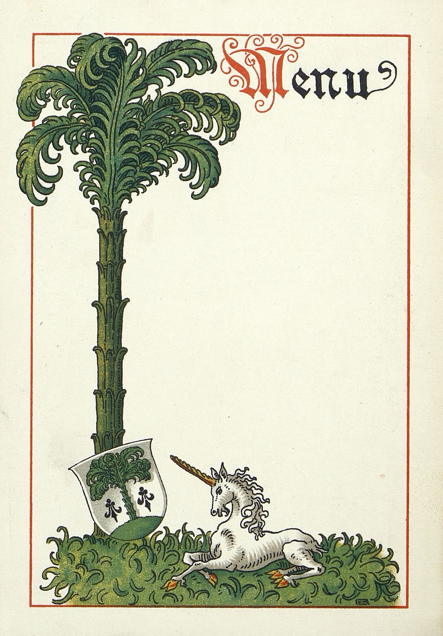 Menu vierge avec palmier et licorne. Armes de la ville de Mackenheim dans le Bas Rhin ? Les armes de Mackenheim se blasonnent ainsi :