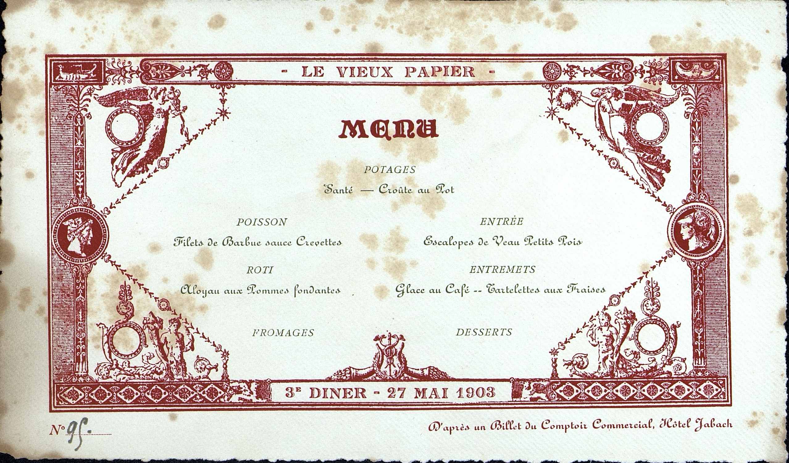 3e Dîner de la Société, Historique et Artistique Le Vieux Papier du 27 mai 1903.