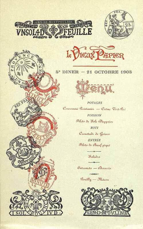 5e Dîner de la Société, Historique et Artistique Le Vieux Papier. 21 octobre 1903.