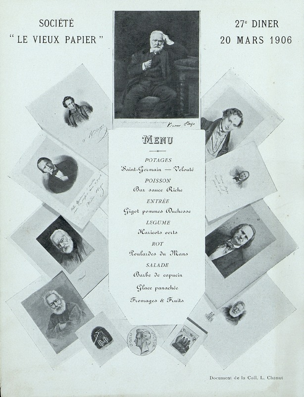 27e Dîner de la Société, Historique et Artistique Le Vieux Papier du 20 mars 1906. Illustré par des écrivains célèbres. Collection L. Chanut.