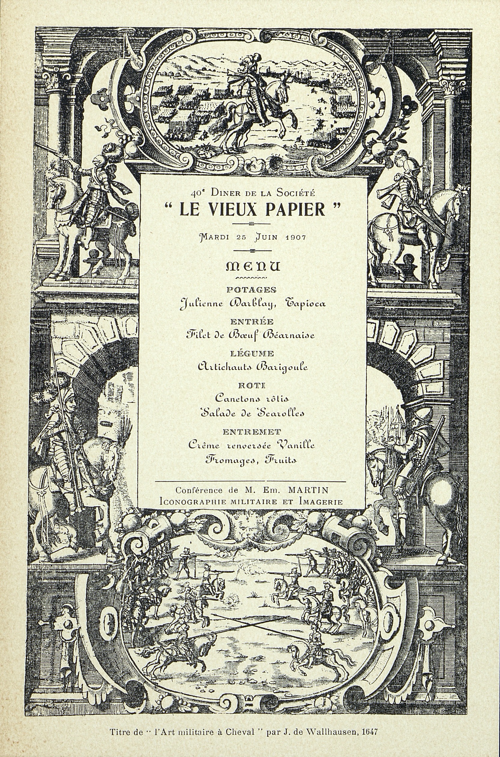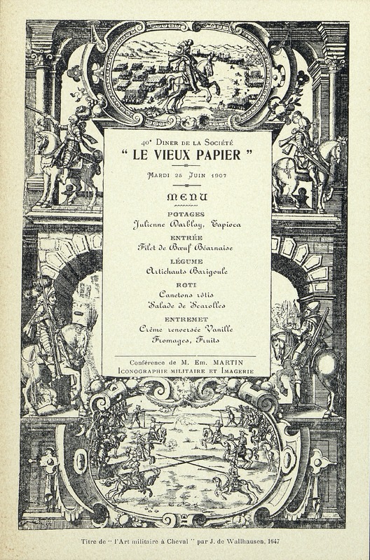 40e Dîner de la Société, Historique et Artistique Le Vieux Papier, au thème de l'Iconographie militaire et Imagerie avec une conférence de M. E. Martin.