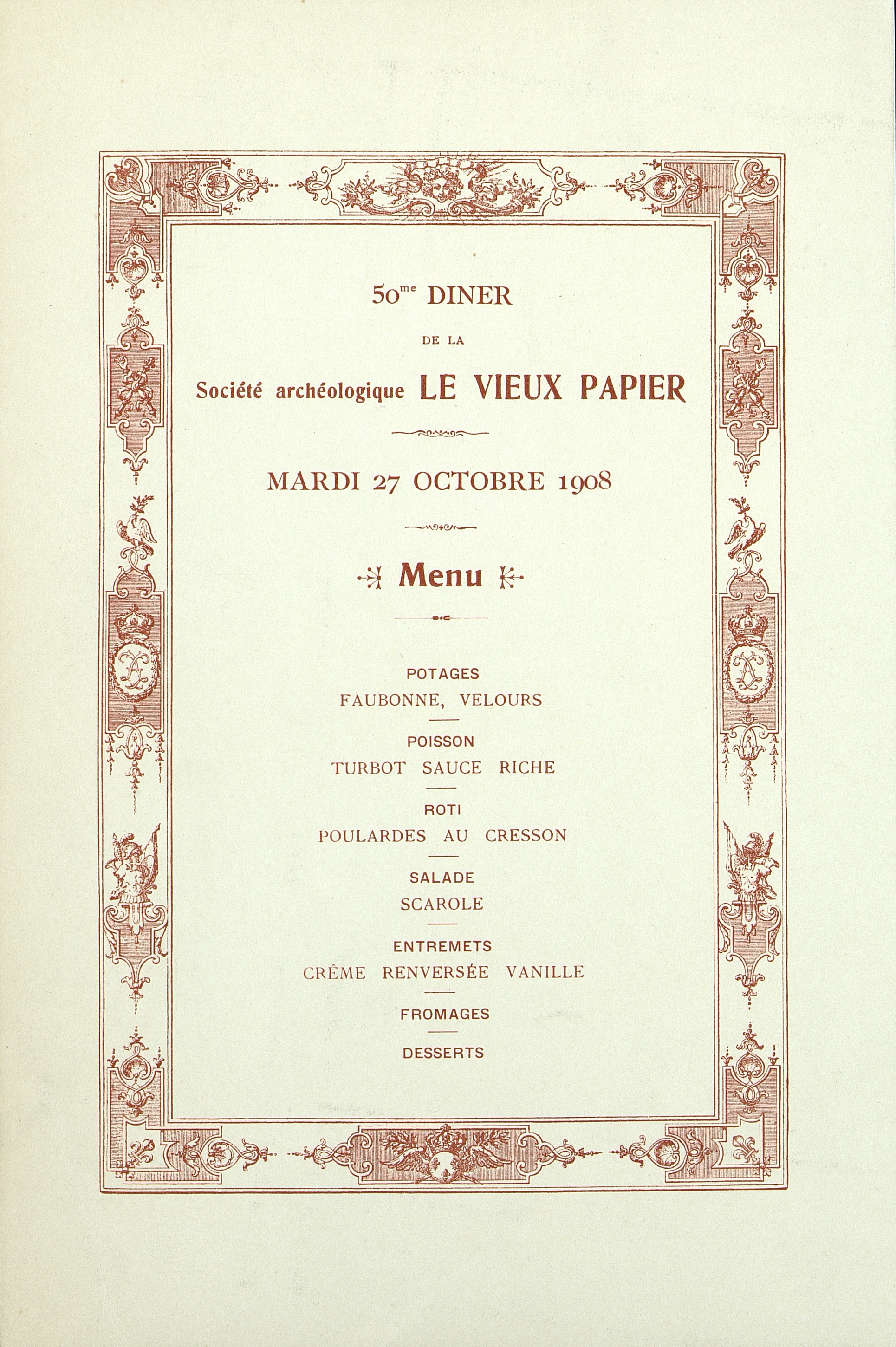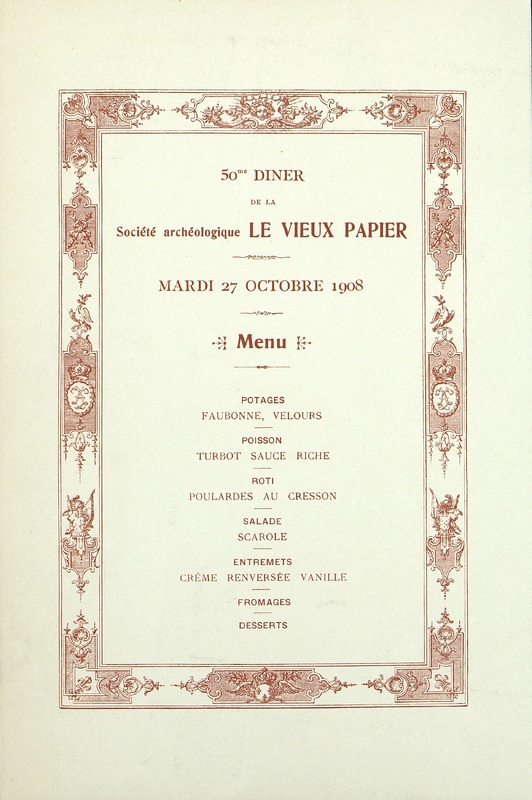50e Dîner de la Société, Historique et Artistique Le Vieux Papier du 27 octobre 1908.