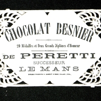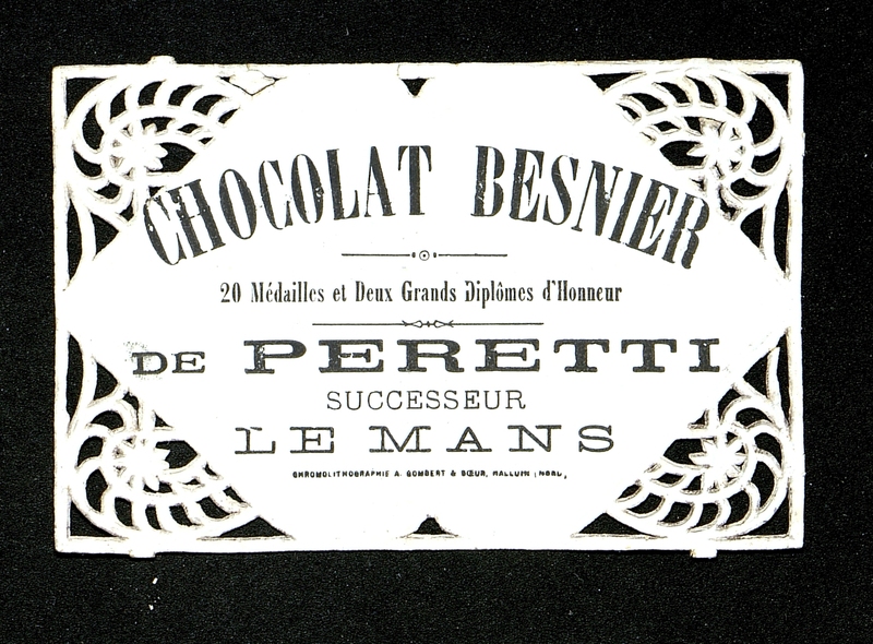 Carte ajourée pour le Chocolat Besnier pour De Peretti au Mans.