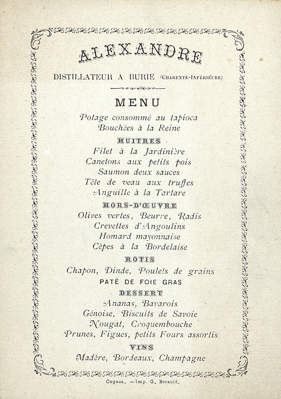 Menu d'Alexandre, distillateur à Burie.