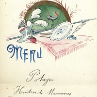 Menu pliant et manuscrit adressé à M. L. P. Couraud