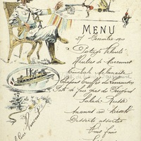 Plats servis : Potage velouté. Huitres de Marennes. Timbale Milanaise. Chapons Truffés du Limousin. Pâté de foie gras du Périgord. Salade Russe. Ananas au Kirsch. Desserts assortis.