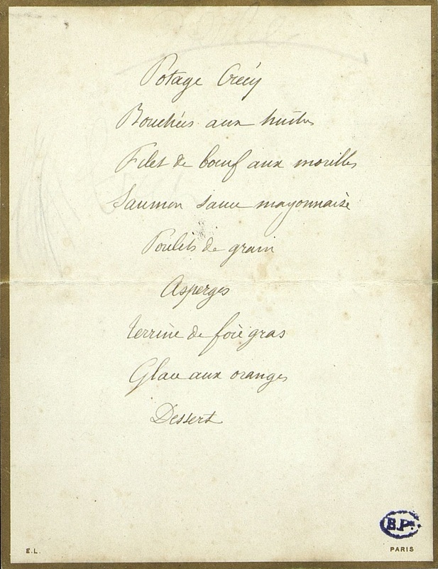 - Menu pliant adressé à Mme Morisson Lacombe.