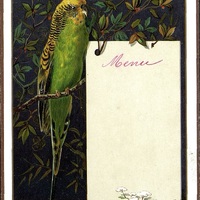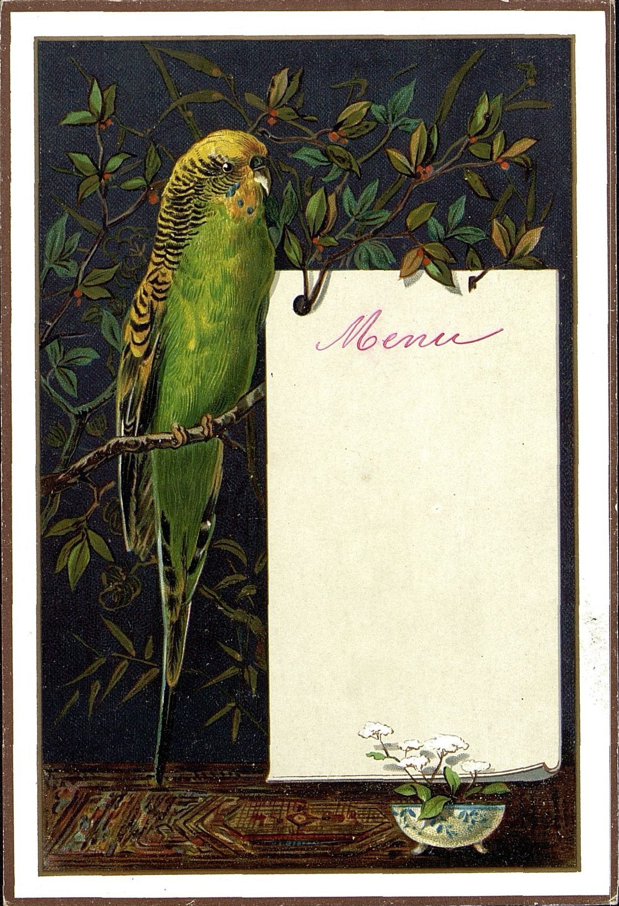 Menu vierge avec oiseau : perruche verte et dorée