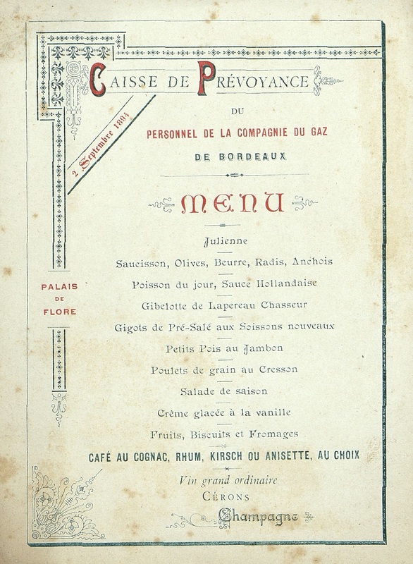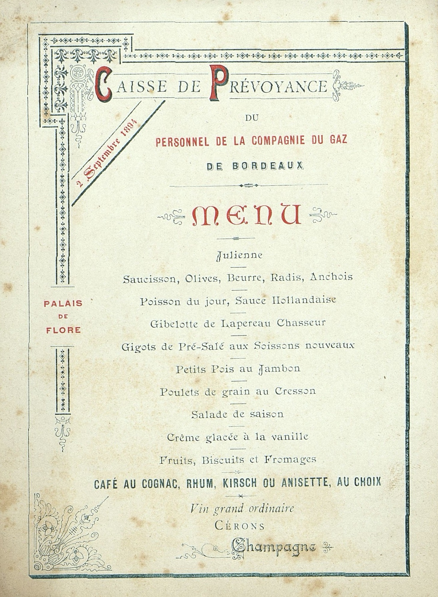 Menu de la Caisse de prévoyance du personnel de la Compagnie du gaz.