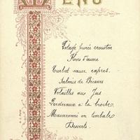 Menu imprimé à décors floraux et avec une lettrine en gothique.