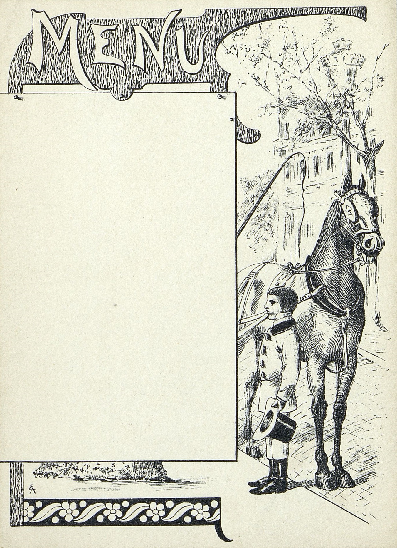 - Menu vierge avec un cheval et son cocher. EA