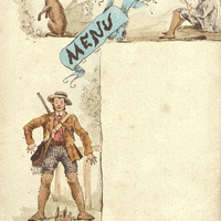 Menu vierge au chasseur et au lecteur de journal " Le Figaro" . L G. Paris, illustrateur.