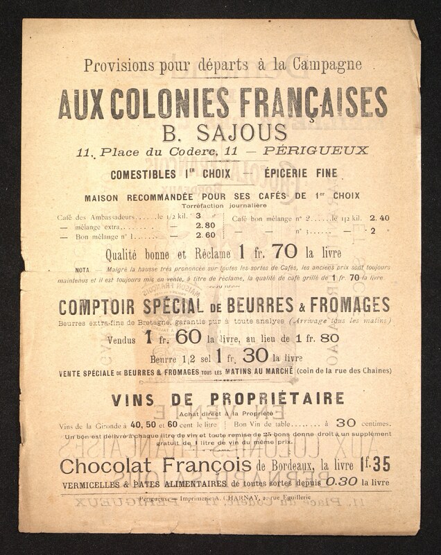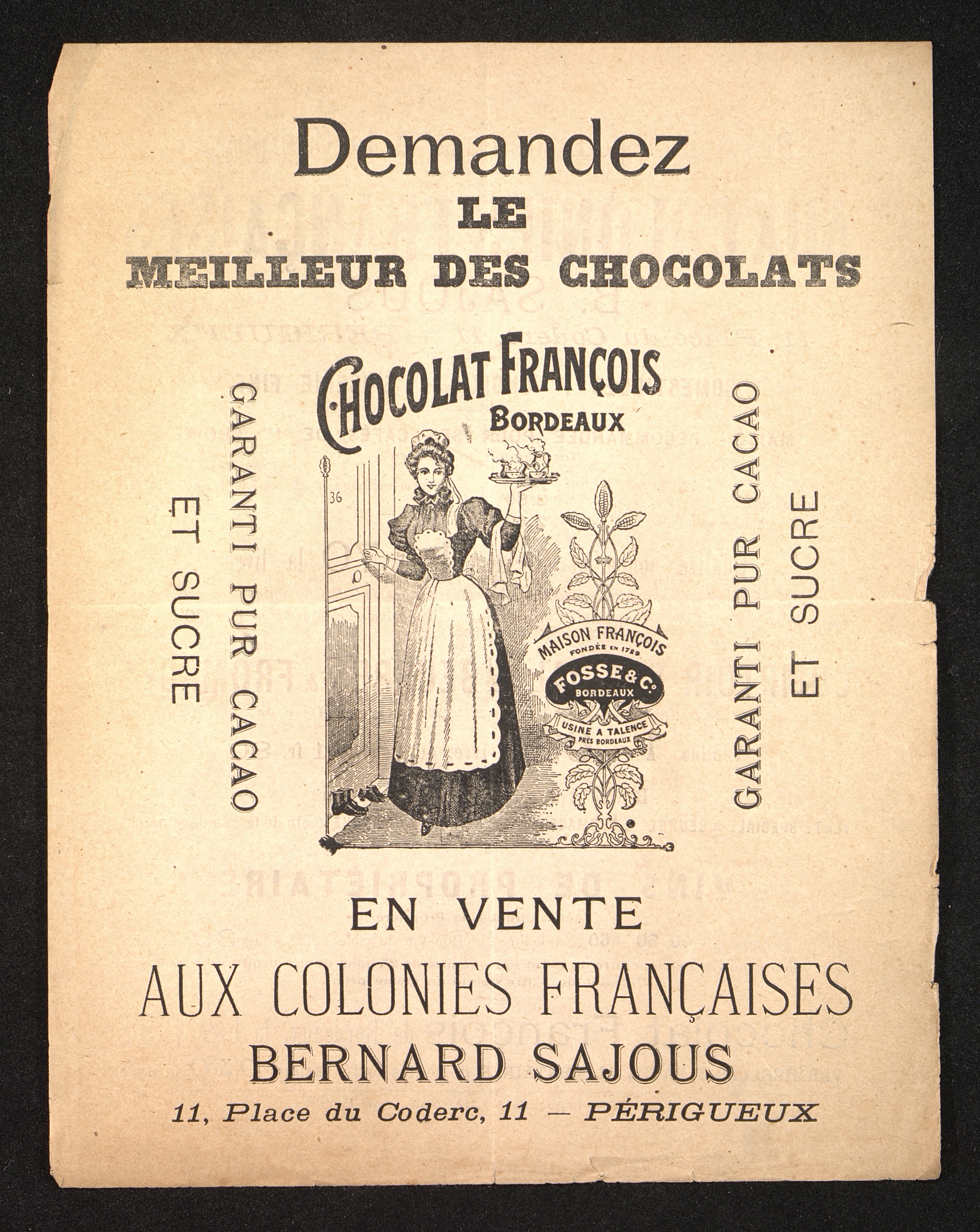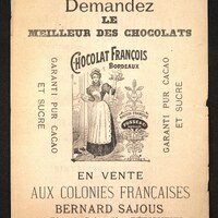 Tract publicitaire illustré pour le Chocolat François à Bordeaux.