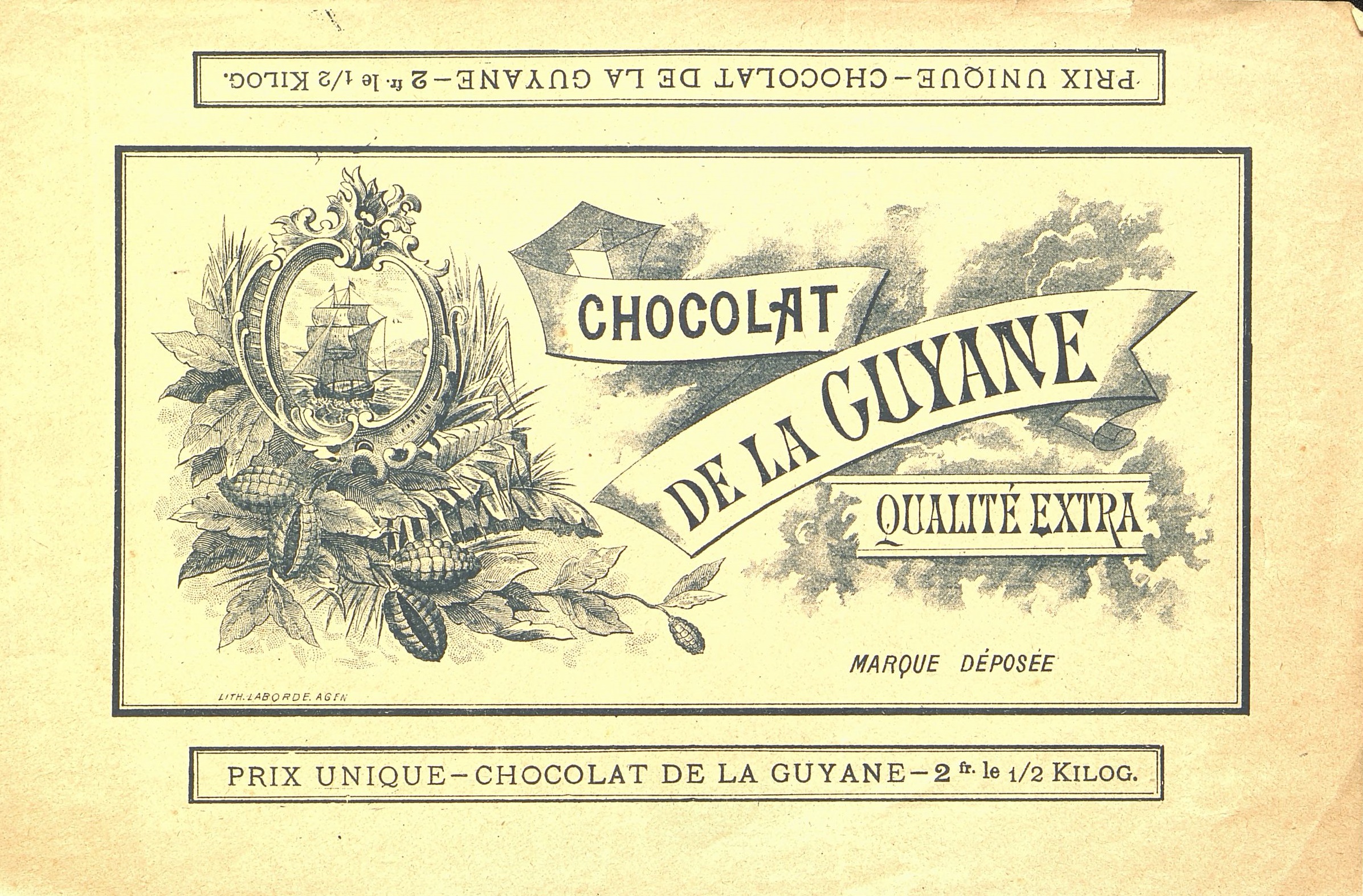 Papier d'emballage pour une barre de Chocolat de la Guyane.