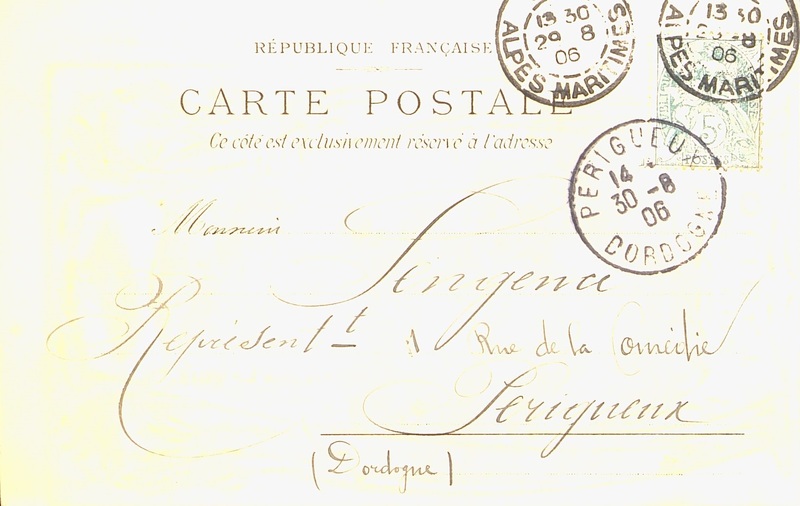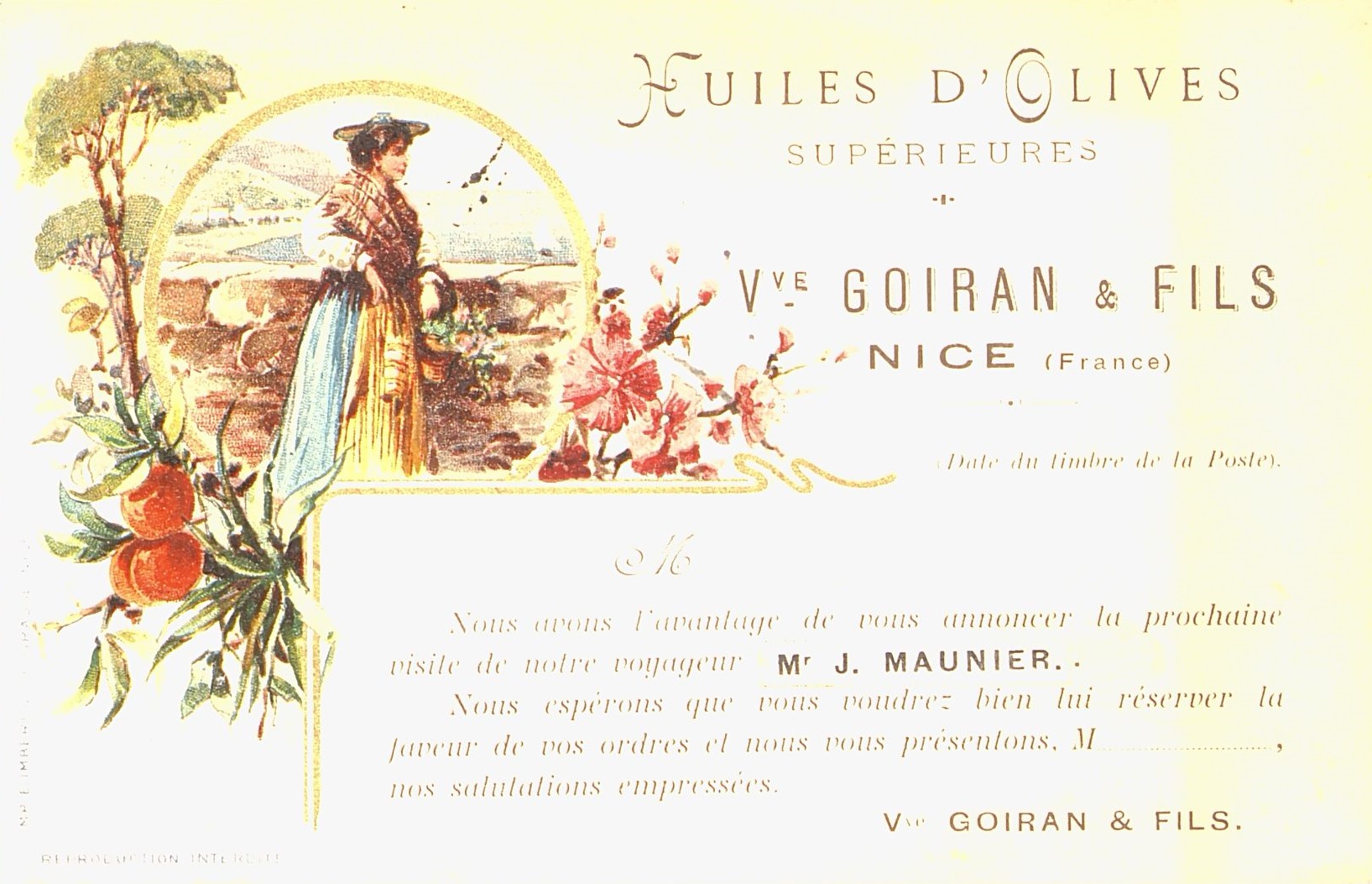 - Carte publicitaire pour des huiles d'olives adressée à M. Sengence.