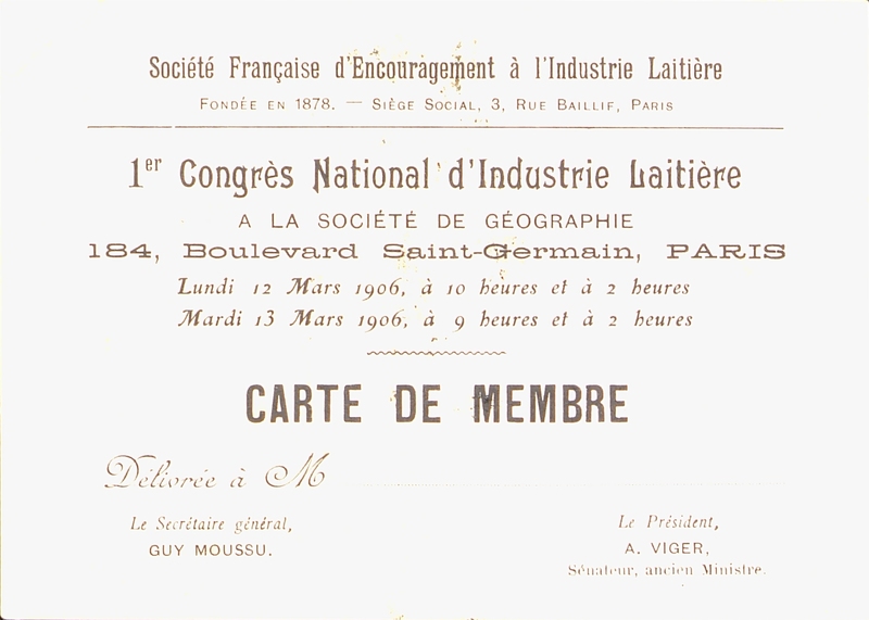 1er Congrès national d'industrie laitière
