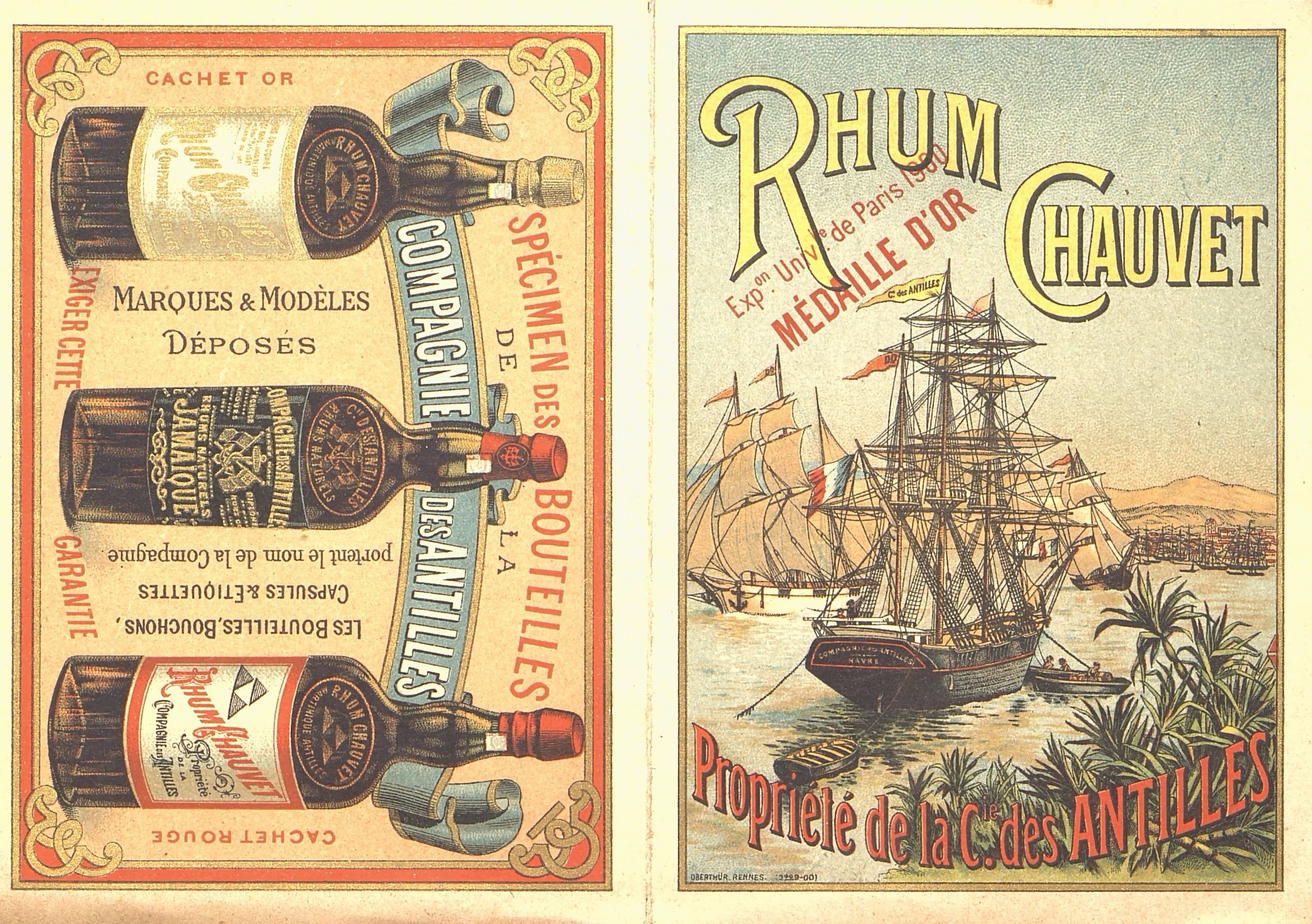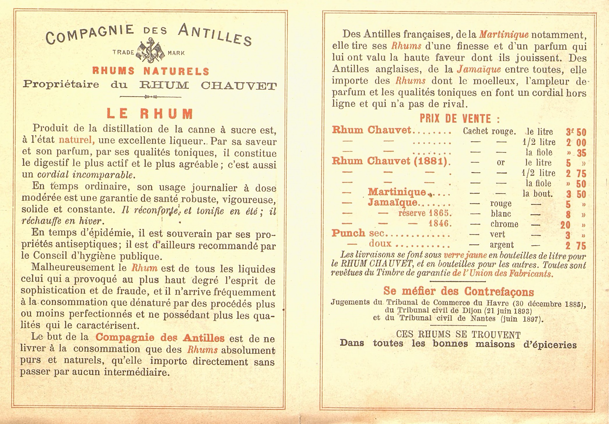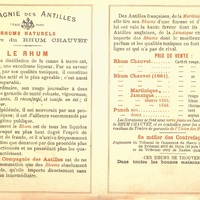 - Dépliant publicitaire illustré, Rhum Chauvet, de la Compagnie des Antilles. Tarifs et description des produits.