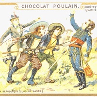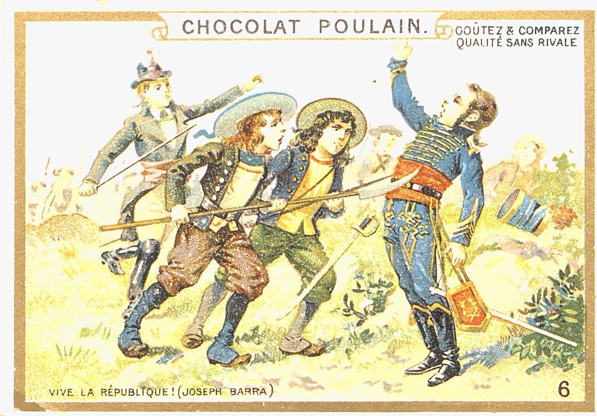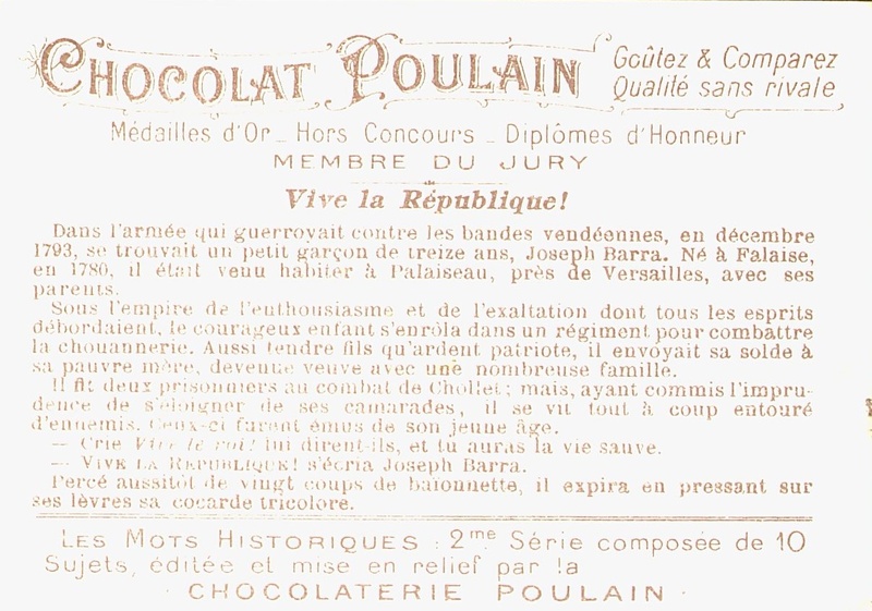 Image publicitaire "Les mots historiques". Chromolithographie . Au dos l'explication de l'image.