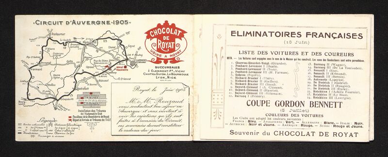 Dépliant du Circuit d'Auvergne Automobile 1905.