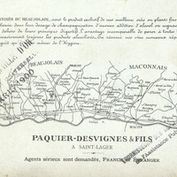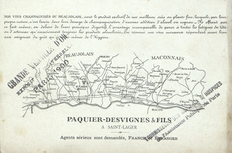Dépliant publicitaire pour le mousseux de la Maison Paquier-Desvignes & Fils. Pages intérieures une cartes des vignobles.