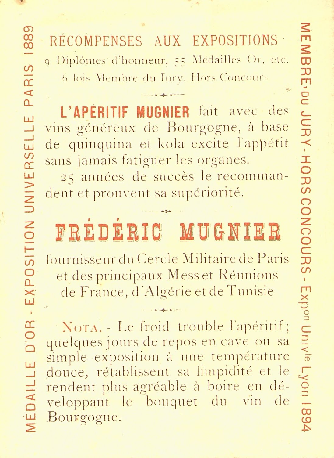 Publicité. Exposition universelle de Paris 1889. Exposition universelle de Lyon 1894.