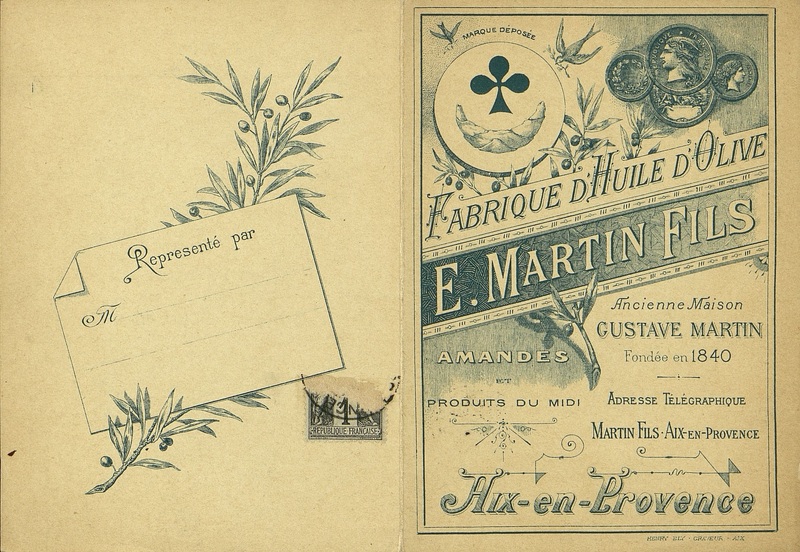 Carte de représentant commercial de la Fabrique d'huile d'olive