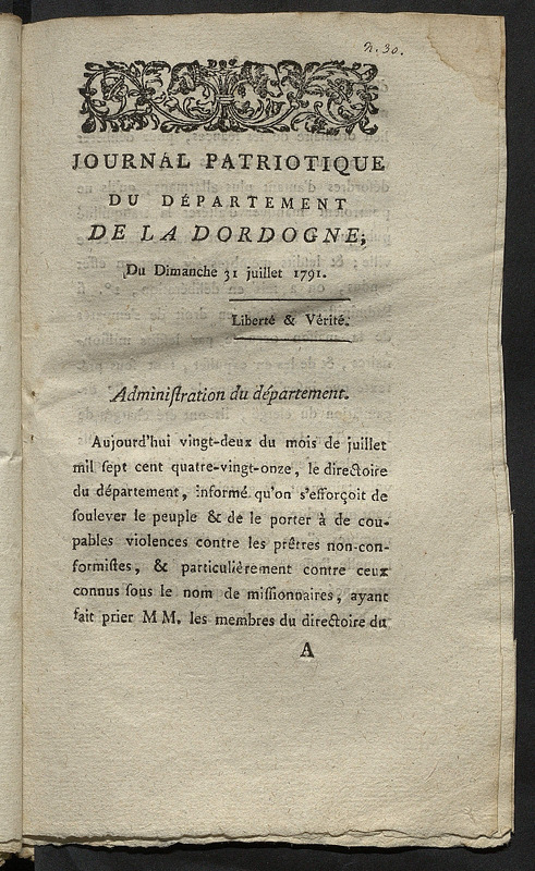 N° XXX, édition du dimanche 31 juillet 1791