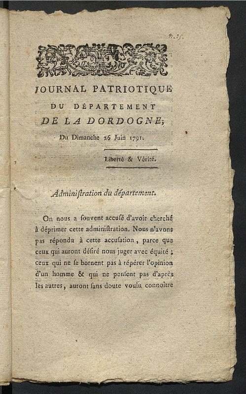 N° XXV, édition du dimanche 26 juin 1791