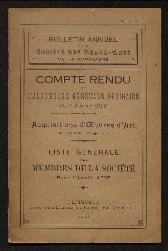 Bulletin annuel de la Société des Beaux-Arts de la Dordogne. Compte-rendu de l'assemblée générale ordinaire du 11 février 1926.