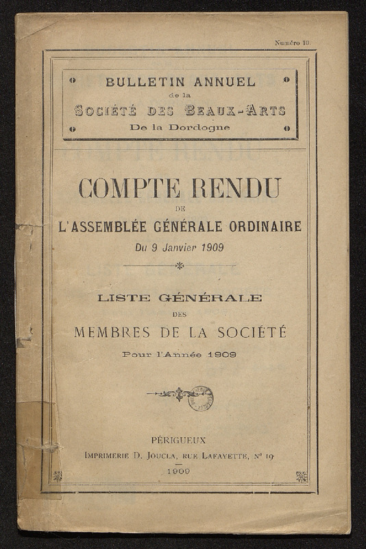 Compte-rendu de l'assemblée générale ordinaire du 9 janvier 1909.