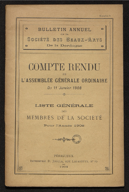 Compte-rendu de l'assemblée générale ordinaire du 11 janvier 1908.