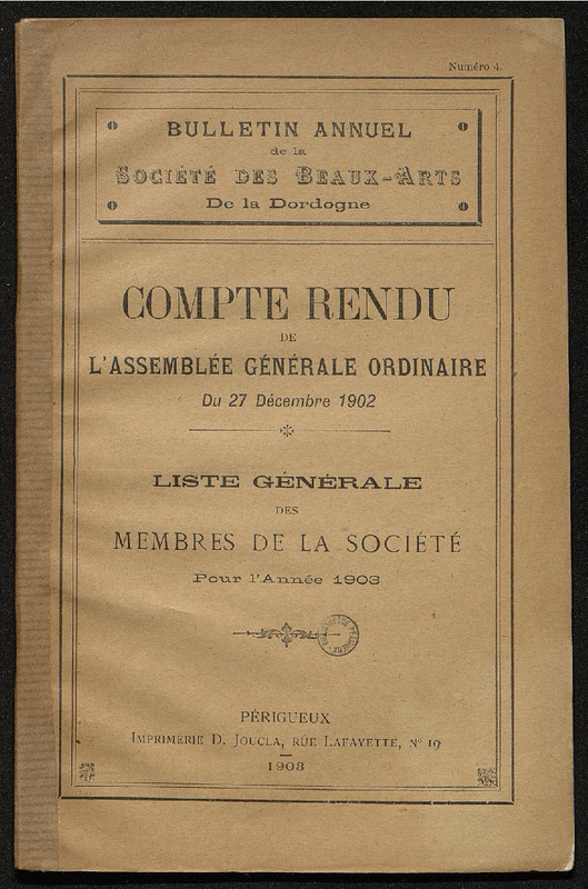 Compte-rendu de l'assemblée générale ordinaire du 27 décembre 1902.